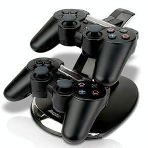 In just 2.5 hours, the Energizer Power & Play Charging System for PS3 charges up to 4 controllers simultaneously. Charge 2 controllers on the station and 2 more with USB cables (sold separately). The charge base offers a sleek and unique design that is impressive and functional. The station let’s you know when it’s charging via the connection by appearing in red light (charging) and green (fully charged). It is powered the by the included UL-approved AC power cord. Keep those controllers charged and get back in the game with fully licensed Energizer Power & Play Charging System for the PS3 by PDP.